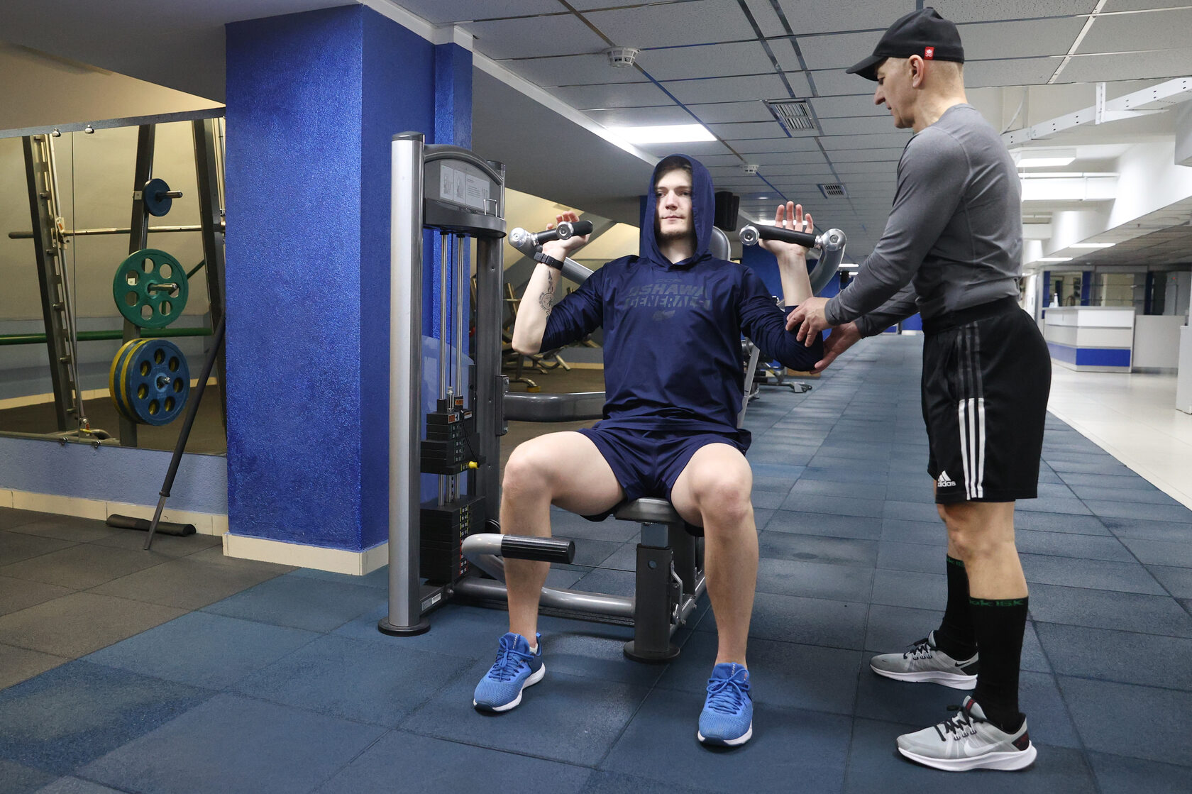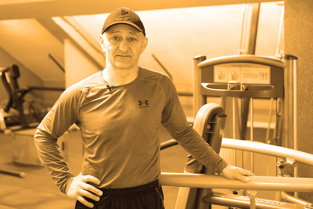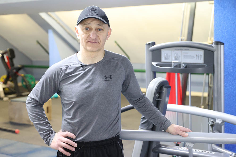 Застаем у тренажера и мастера спорта СССР по тяжелой атлетике Александра Приходько, который трудится в "Чижовка-Арене" инструктором и дежурным по залу искусственного льда
