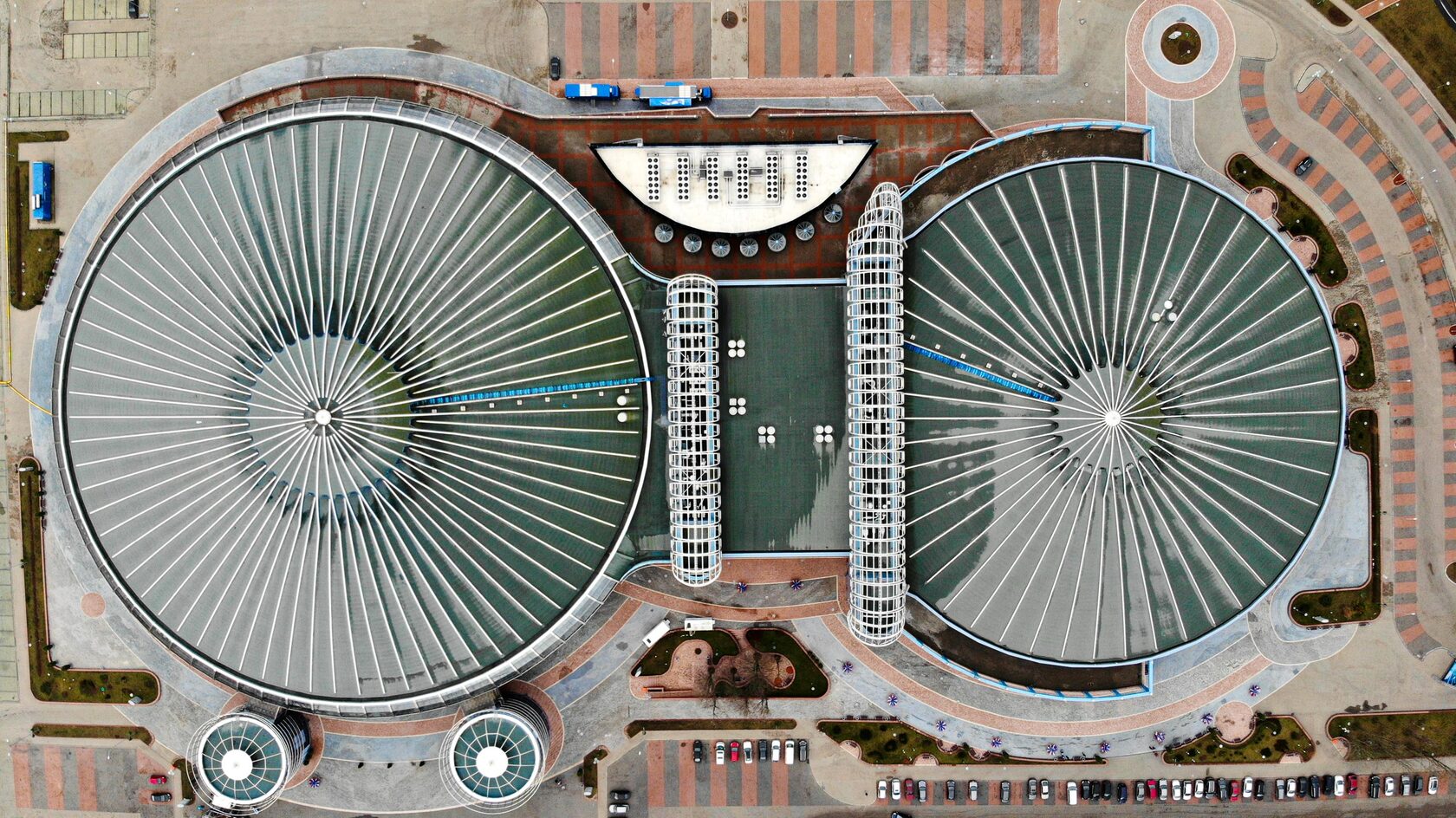 Такое архитектурное решение, по словам Анатолия Ничкасова, было продиктовано близостью к живописному Чижовскому водохранилищу, напоминающему переливающийся сосуд. Здесь предусмотрены две спортивные площадки: первая (большая арена) - для проведения соревнований, вторая - для тренировок и разминки спортсменов перед матчами.