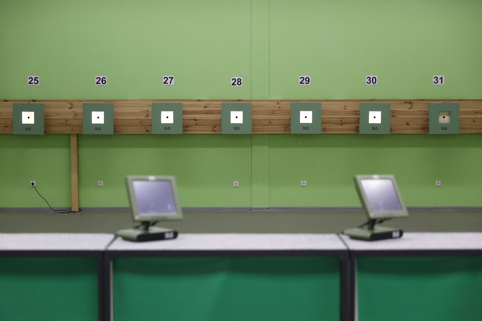 Кроме непосредственно зала стрельбы, продуманы внутренние помещения. Стрельба все же довольно специфический спорт, к организации безопасности предъявляется немало требований. Так, например, раздевалки спортсменов, где хранится оружие, оснащены специальными решетками и усиленными дверями - таковы современные требования. |